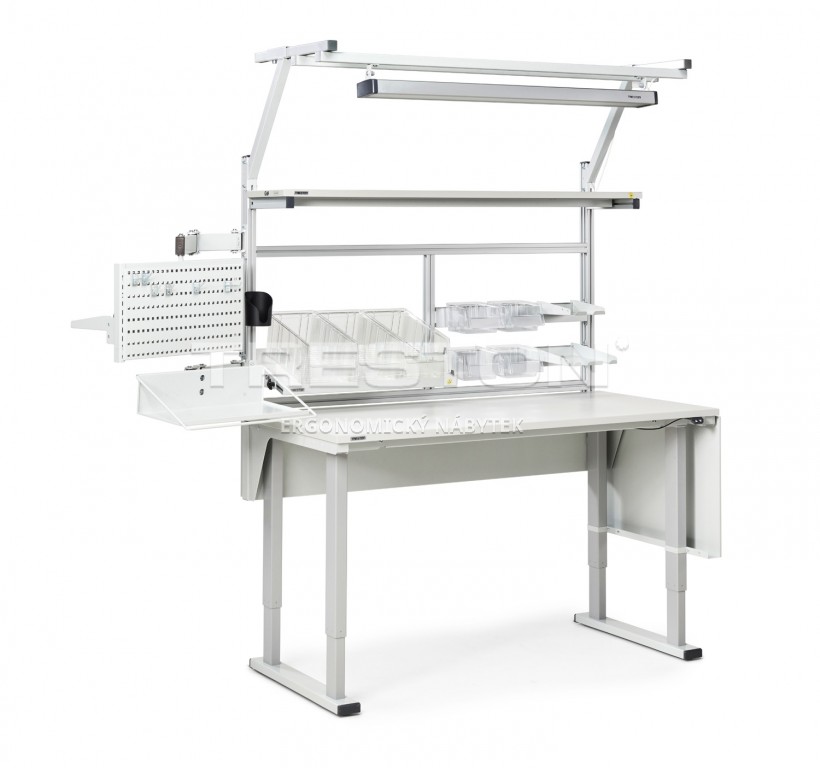 - Na rám se připevňuje pracovní deska ve variantách HPL, LPL nebo ESD.