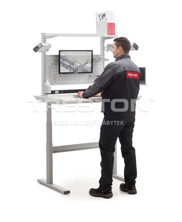 - Pracovní stůl s elektrickým nastavením výšky pracovní desky.