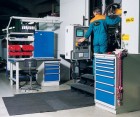 Centrálně uzamykatelké zásuvkové jednotky z vysoce kvalitní oceli nabízí prostor pro skladování nástrojů a malých součástek. Montují se pomocí držáků pod desku stolu. K dispozici jsou také verze s kolečky či soklem. Zásuvkové skříňky jsou pokryty epoxidovou ochrannou vrstvou (šedá, RAL 7035), centrálním zamykáním a úchytkou z anodizovaného hliníků po celé šířce zásuvky.