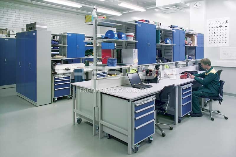 Regály a skříně jsou základním prvkem udržujícím pracoviště v pořádku a v dobrém stavu. Policové jednotky mohou být také používány jako prvky dělicí místnost a jsou k dispozici s ESD ochranou.