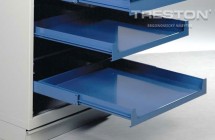 - Výsuvná police na kuličkových ložiscích vhodná do regálových systémů o šířce 750 mm.