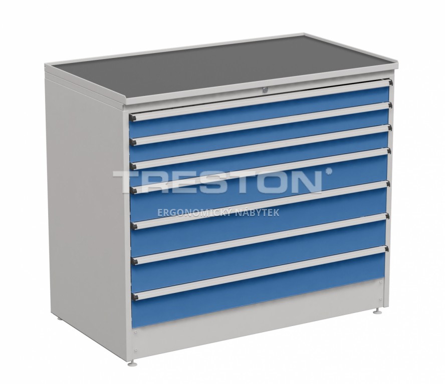 Zásuvkové jednotky řady 130 jsou nejširší variantou ze všech nabízených skříněk. Se svojí šířkou 1330 mm poskytují obrovský skladovací prostor. K dispozici máte dvě varianty o výšce 110 cm a 140 cm. 110 cm vysoká skříňka obsahuje kryt, který slouží jako pracovní deska s gumovou podložkou. Tato výška je totiž ideální pro práci ve stoje. Bezpečnostní zámek zabraňuje otevření dalších zásuvek, pokud máte již jednu otevřenou. Díky němu nikdy nedojde k převrácení skříňky.