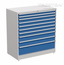 Centrálně uzamykatelké zásuvkové jednotky z vysoce kvalitní oceli nabízí prostor pro skladování nástrojů a malých součástek. Zásuvkové skříňky jsou pokryty epoxidovou ochrannou vrstvou, centrálním zamykáním a úchytkou z eloxovaného hliníku po celé šířce zásuvky. Hladké a tiché teleskopické kuličkové výsuvy poskytují snadné otevření.