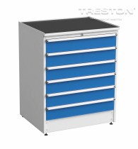 Centrálně uzamykatelké zásuvkové jednotky z vysoce kvalitní oceli nabízí prostor pro skladování nástrojů a malých součástek. Zásuvkové skříňky jsou pokryty epoxidovou ochrannou vrstvou, centrálním zamykáním a úchytkou z eloxovaného hliníku po celé šířce zásuvky. Hladké a tiché teleskopické kuličkové výsuvy poskytují snadné otevření.