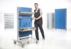 - Otočný stojan se zásobníkovou skříní v ESD / antistatickém provedení.